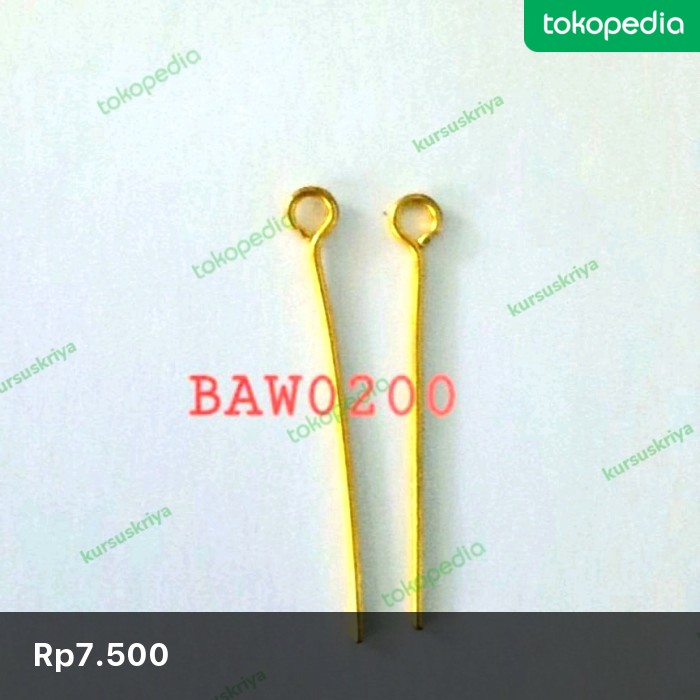 kursuskriya - eyepin kepala paku loop paku aksesoris untuk membuat aksesoris bahan metal warna gold panjang 3 cm p...