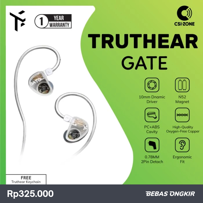 TruthEar GATE 1DD Dynamic Driver In Ear Monitor Earphone - White, No Mic