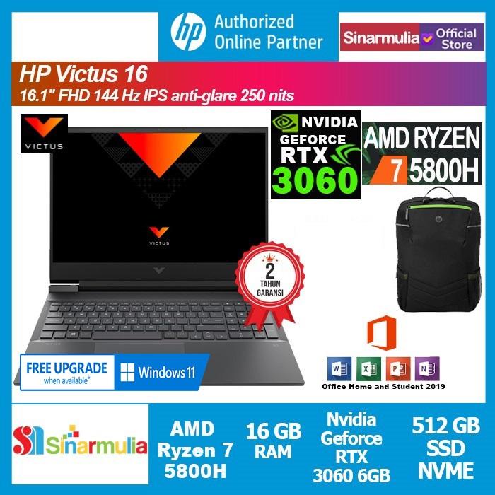 Sinarmulia Sukses Makmur - HP VICTUS 16-e0084ax/85ax/86ax RYZEN 7 5800H RTX3060 512GB SSD 16GB 144HZ WIN10+OHS GARANSI RESMI H...