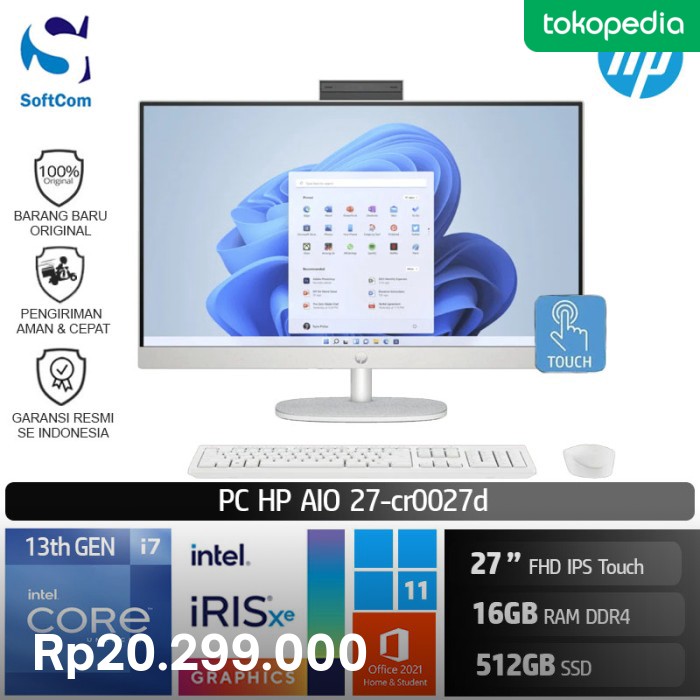 Beli PC HP AIO 27 cr0027d i7 1355U/16GB/512GB SSD/27" FHD IPS Touch/W11+OHS di SOFTCOM. Promo khusus pengguna baru di aplikasi Tokopedia!