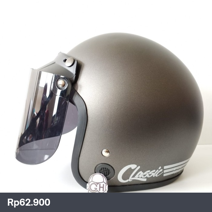 HELM BOGO CLASSIC GARIS RETRO MOTOR DEWASA SNI - GREY DOFF, KACA FLAT