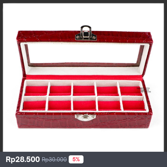 Kotak Box Tempat Cincin Batu Akik Dan Permata Model Kulit Sintetis - 10 SLOT, Hitam