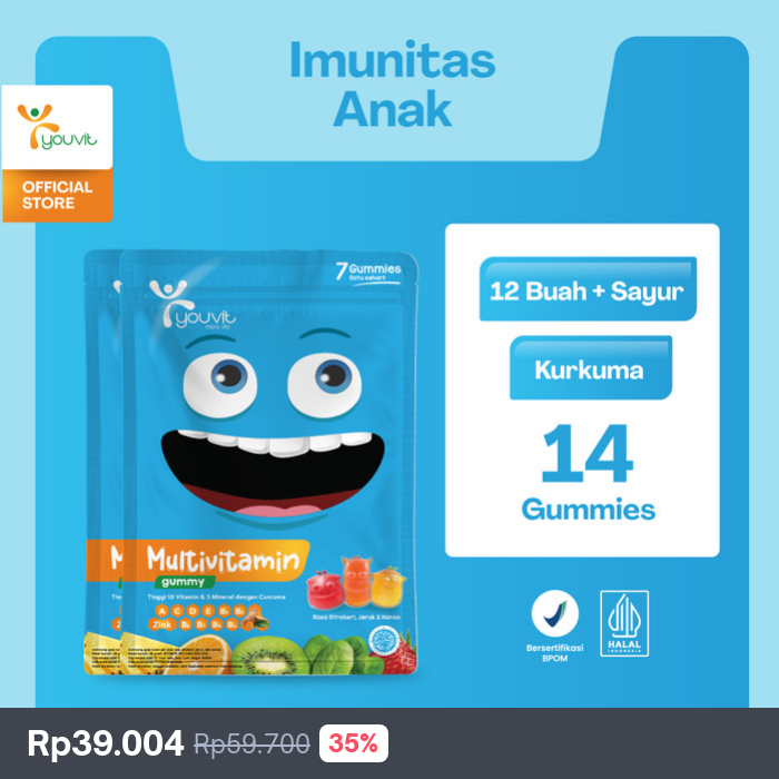 Multivitamin Gummy Anak untuk Tumbuh Kembang | Youvit Multivitamin Anak 2 Sachet (14 Hari) dengan Vitamin C, Vitamin D, Sayur, Buah, Curcuma