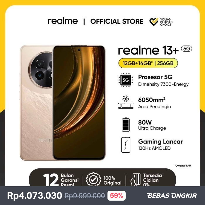 Official realme 13 Plus 5G (Prosesor 5G Dimensity 7300-Energy | 6200mm2 Area Pendingin | 80W Ultra Charge | Gaming Lancar 120Hz AMOLED) - Victory Gold
