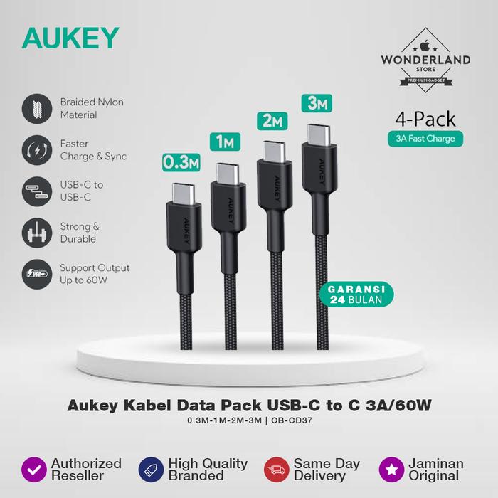 Aukey Kabel Data USB-C to C 3A/60W 30cm/1-2-3M Super Fast CB-CD37 - Rp167.000