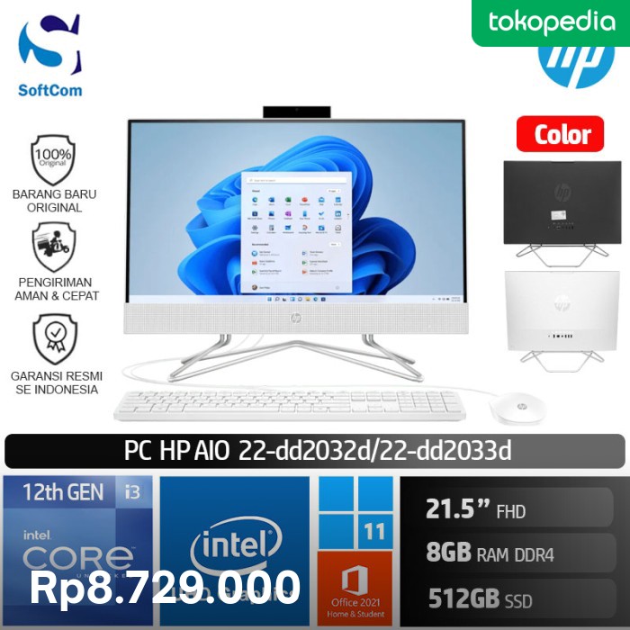 PC HP AIO 22 dd2032d dd2033d i3 1215U/8GB/512GB SSD/21.5" FHD/W11+OHS di SOFTCOM | Tokopedia