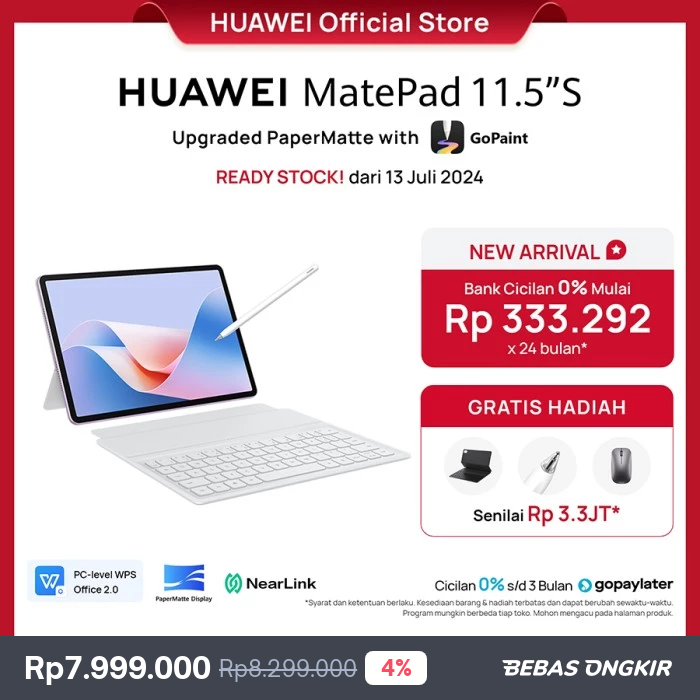 HUAWEI MatePad 11.5"S PaperMatte Edition Tablet [8+256GB] | NearLink Accessories | GoPaint | PC Level WPS - Violet