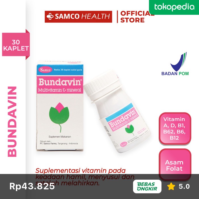 Samco Health Official Shop - Bundavin adalah suplemen multivitamin dan mineral untuk ibu hamil dan menyusui. Bundavin diberikan s...