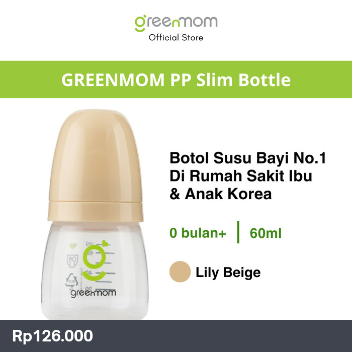 Greenmom PP Slim 60ml Lily Beige / Anti-kolik / Brand Korea / Design Baru / Botol Susu Bayi Terbaik